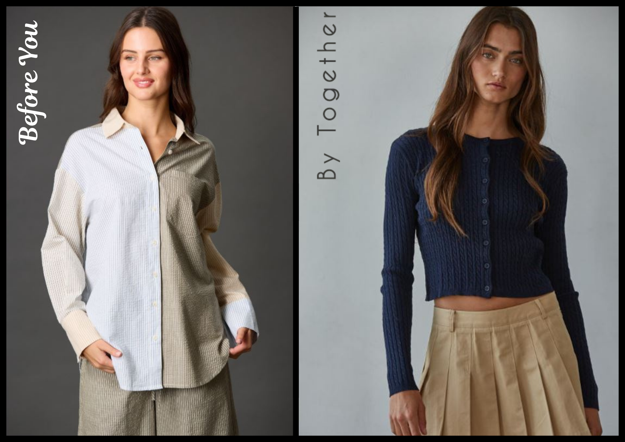 Choose from jackets, vest, dresses, flannels, shackets, sweaters,  polos, graphic tees, & MORE!