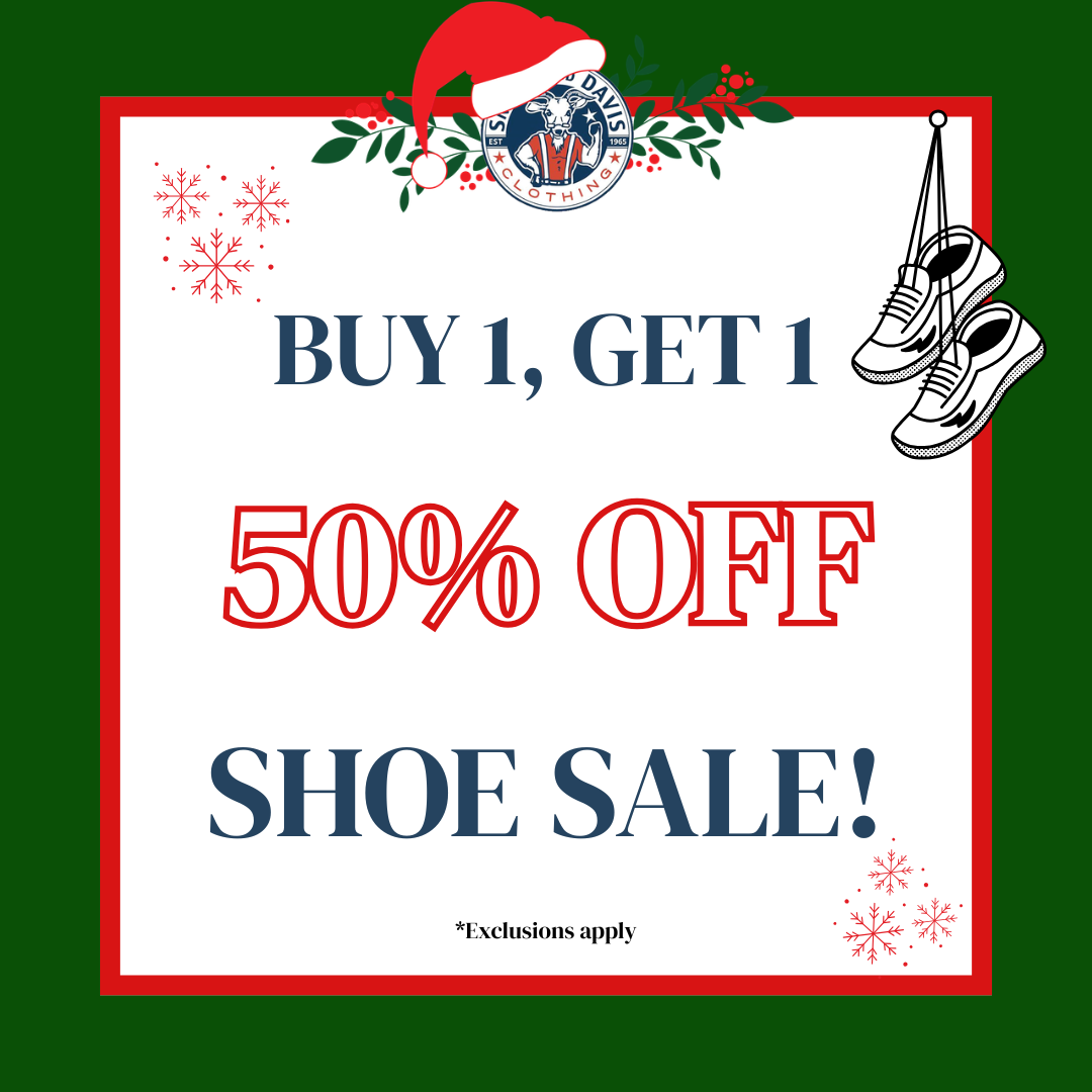 Buy 1, Get 1 HALF PRICE on our LARGE selection of footwear!